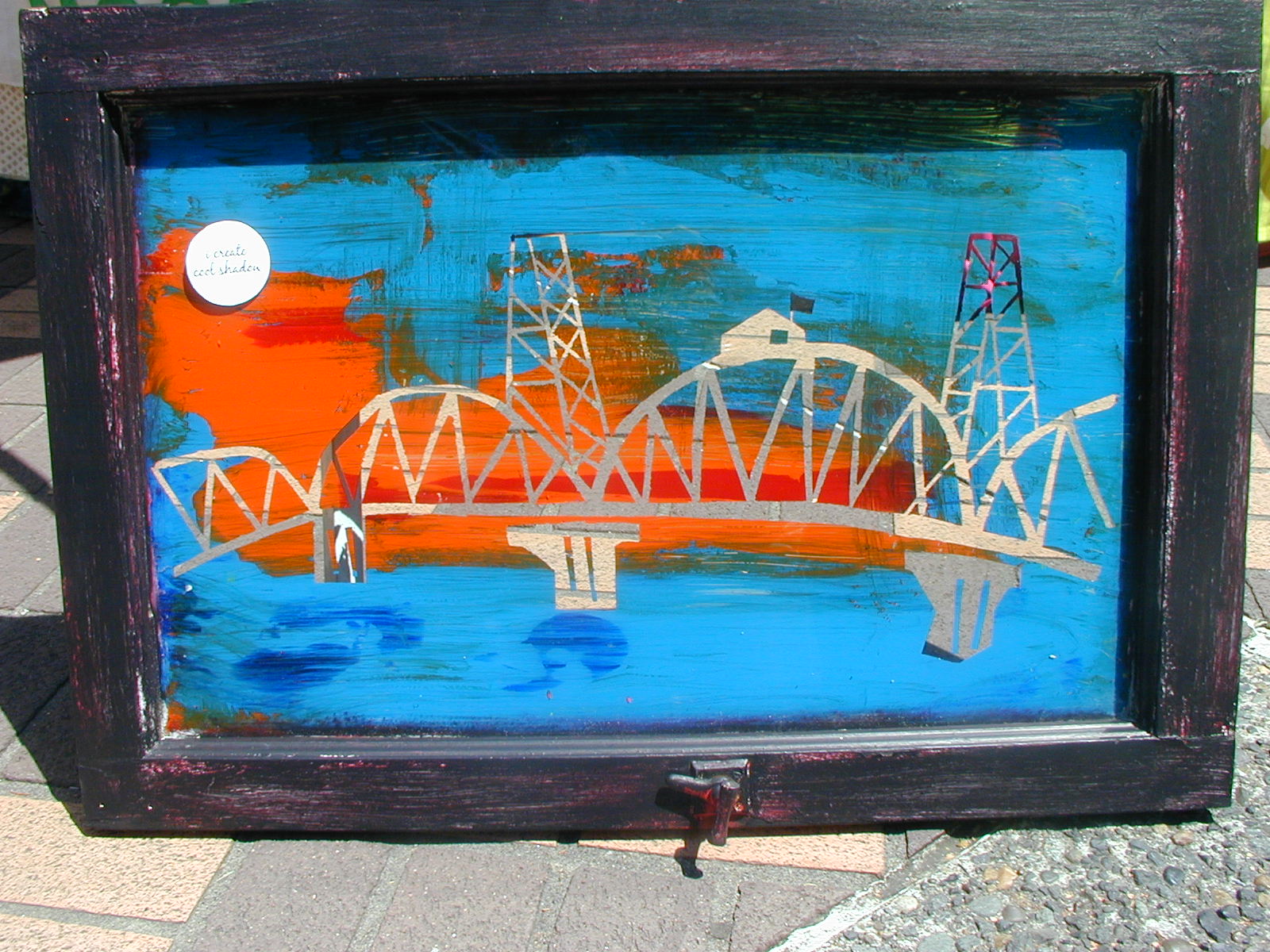 kaya is working on his first window. i'm also trying to finish about 10 windows by next month and will be looking for a coffee shop in the neighborhood to show them off. i just got hawthorne bridge done yesterday and working on st. johns bridge today. tomorrow will be a free art one. my friend also wants me to draw a buddha on her mirror...still in progress :P